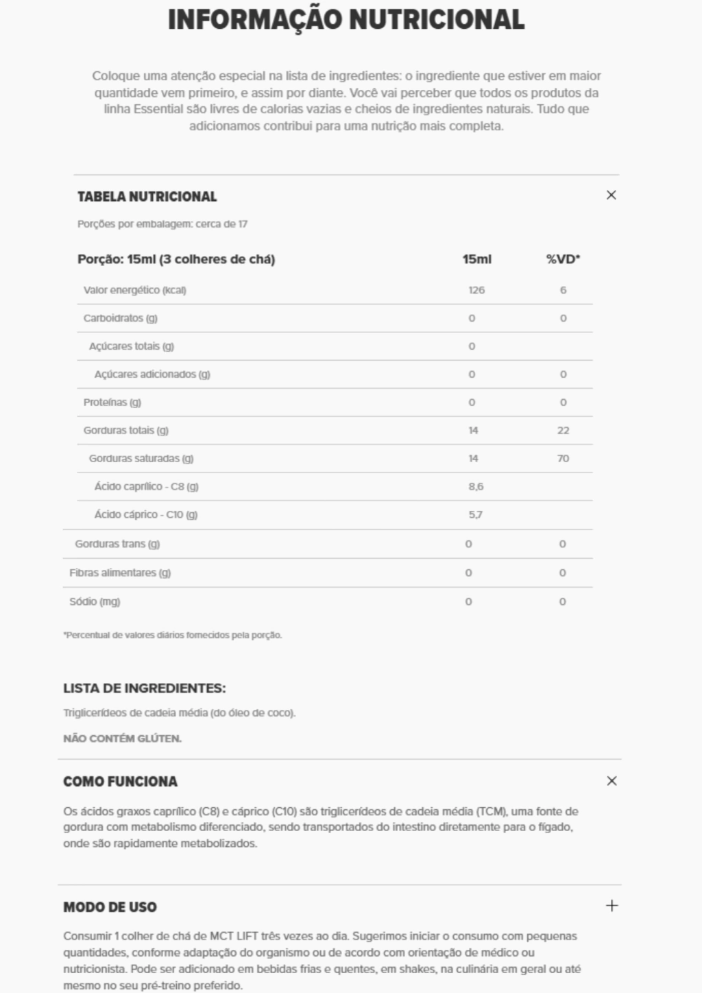 Energia rápida e limpa! O MCT Lift é um suplemento de triglicerídeos de cadeia média (TCM) que promove foco, saciedade e energia imediata. Perfeito para dietas low carb, cetogênicas ou para quem precisa de mais disposição mental e física.